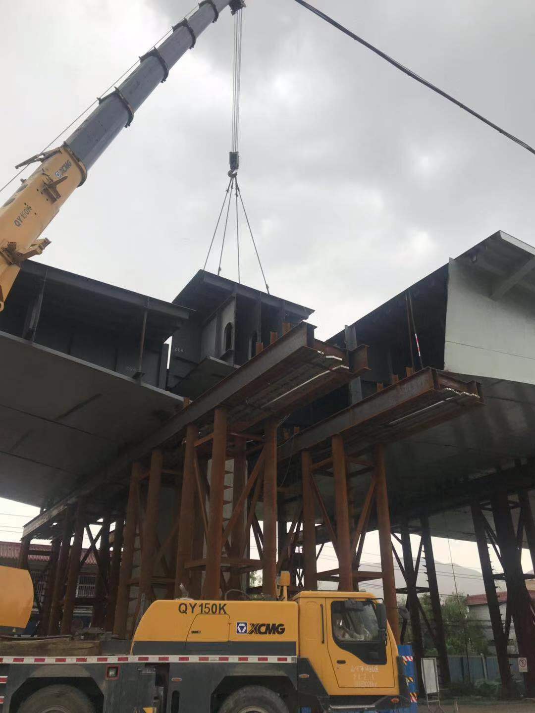 2019年7月23日蘭州鋼箱梁項(xiàng)目e段正在吊裝定位,